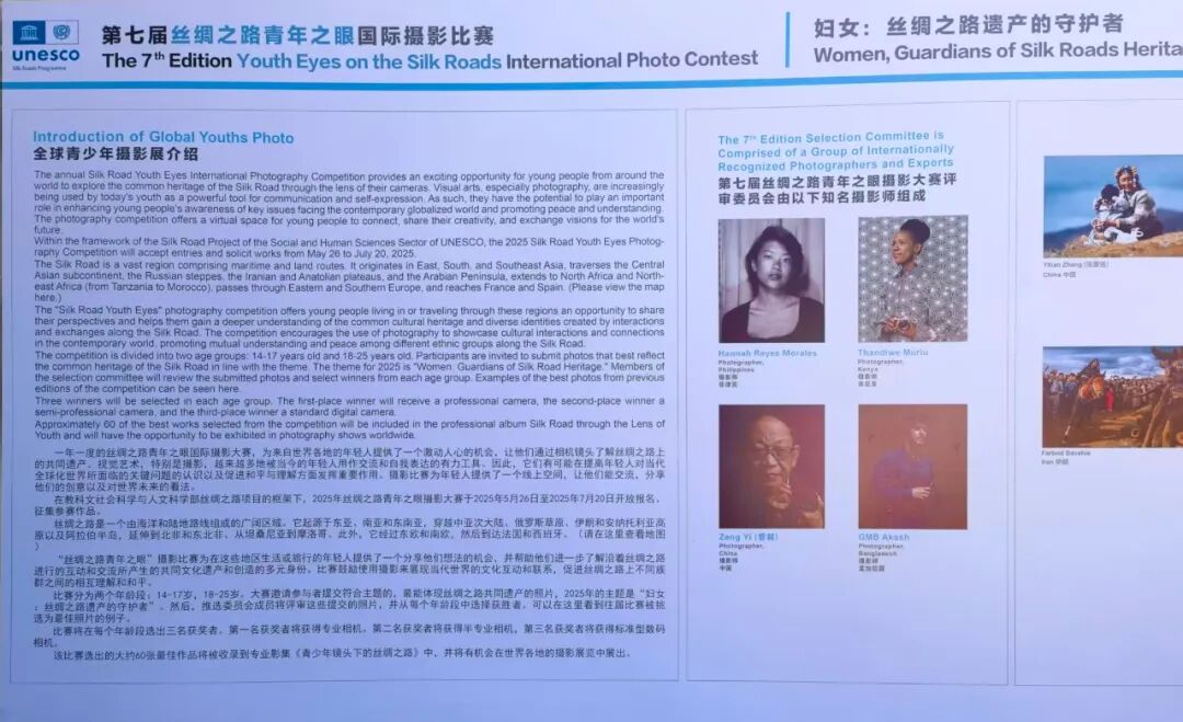 "丝绸之路青年之眼国际摄影大赛"是2018年由联合国教科文组织创办的国际摄影赛事,每年一届的"丝绸之路青年之眼国际摄影大赛",得到世界各国广大青少年摄影爱好者的广泛响应和积极参与,连续七年举办的摄影大赛,先后共有来自120多个国家的10万余幅作品参加了比赛,在全球产生了重要影响。