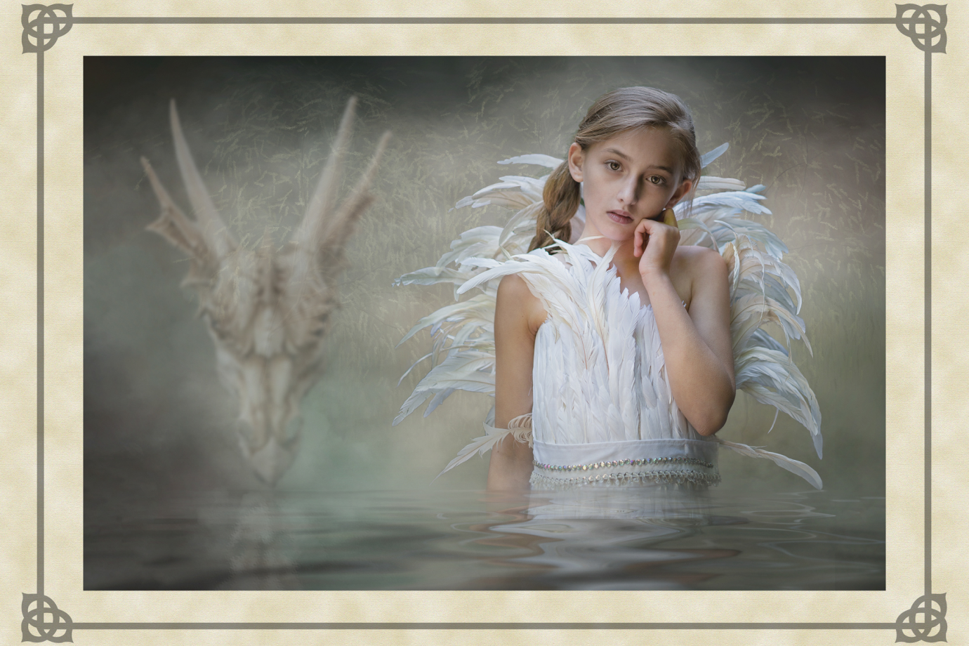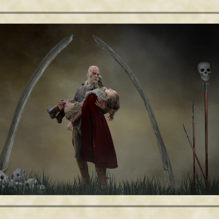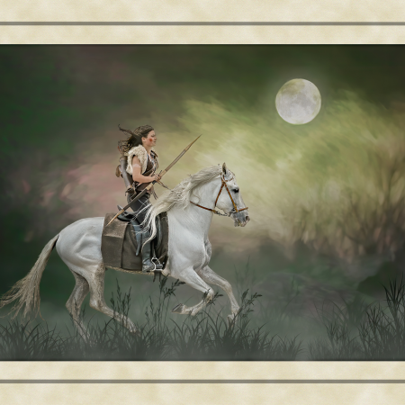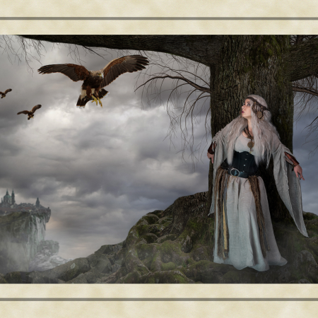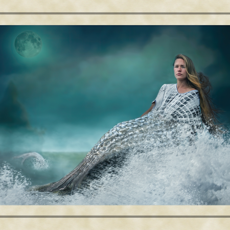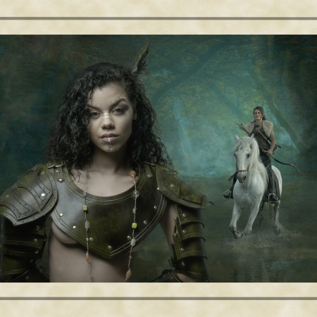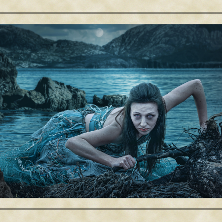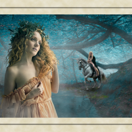 These ancient tales feature images of strong independent women and heroic men appearing through the mists of legend. Dominated by the colours of earth, sea and forest, my images chart the development of these myths from Merlin’s predictions about the coming of a warrior queen, to the final burial of the last of this ancient race. The supernatural world fills these tales with spirits taking the form of wolves and birds of prey. Sirens emerge from backgrounds which are timeless, to lure mortals to the shores of an endless sea.The challenge was to capture images of mythological characters rather than photographic models. The willing suspension of disbelief needed to see a banshee keening outside a quiet mountain homestead, or riders galloping through the night, required me to work hard with my models crafting their facial expressions and body posture. Attempting to capture a sense of timelessness and myth was a difficult yet enormously satisfying challenge. Here history meets mythology in a visual celebration of the past.