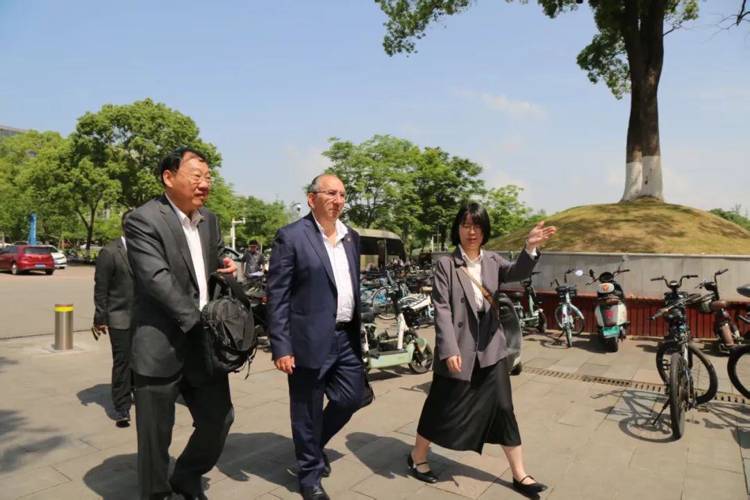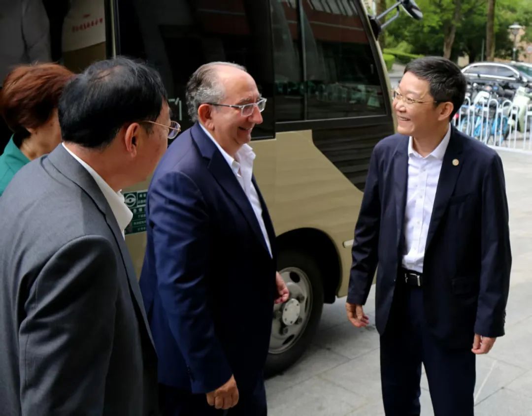 中南大学副校长黎志宏在中南大学校园迎接国际摄影艺术联合会主席里卡尔多•布西主席一行。