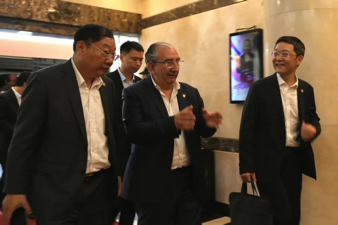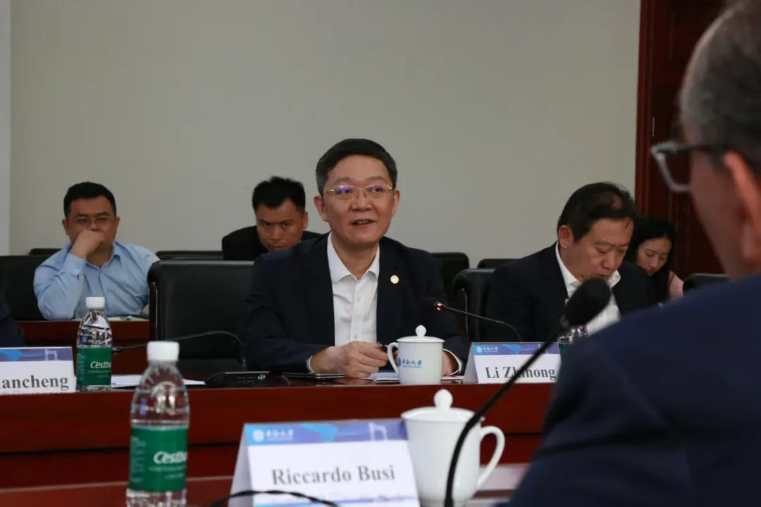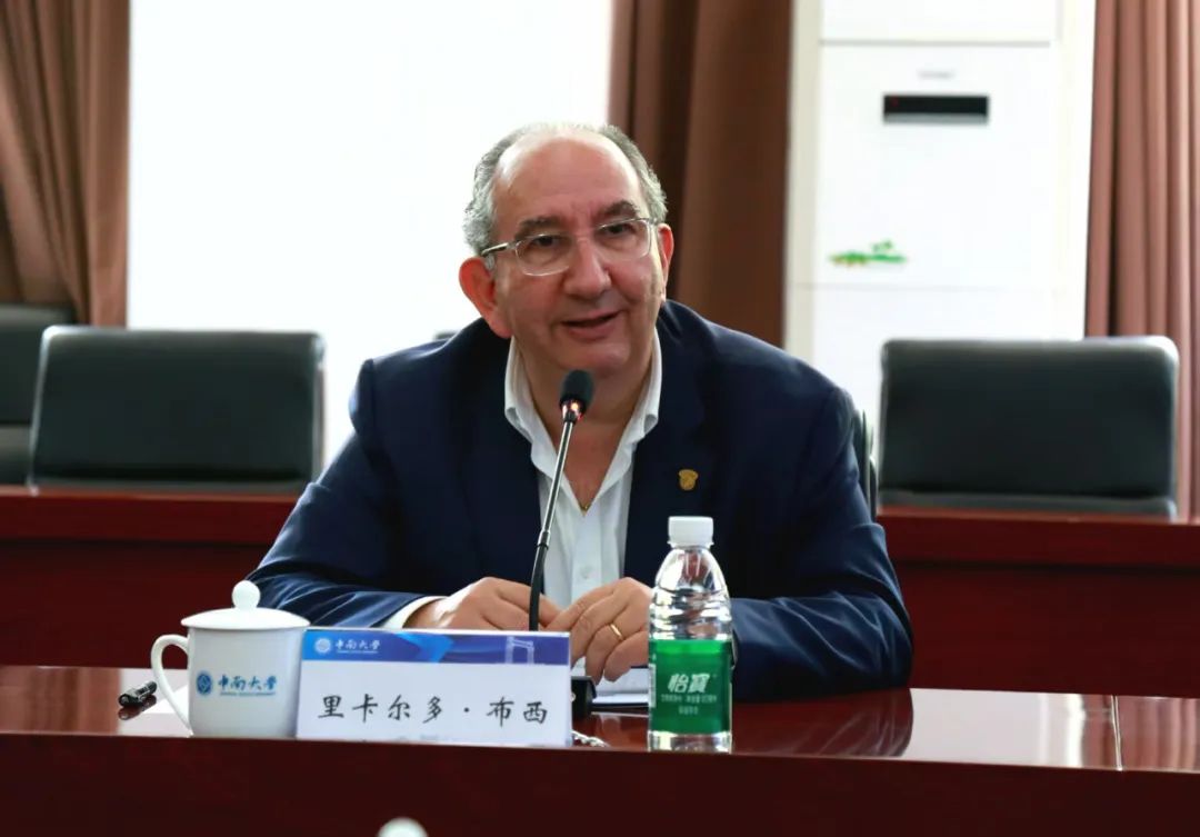 参观过后,中南大学校长、中国工程院院士李建成、副校长黎志宏等校领导首先在中南大学岳麓山校区科教楼会议室亲切会见了国际摄联主席里卡尔多•布西一行,双方进行了亲切友好的会谈。