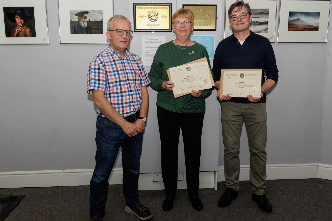 The FIAP Liaison Officer for Ireland, Paul Stanley EFIAP/p ESFIAP FIPF, then presented each of the recipients with the certificate and badge.
