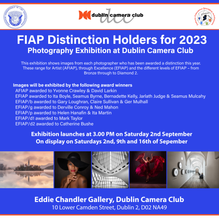 On 2nd September 2023 the Dublin FIAP Exhibition Centre was very pleased to host an exhibition of the submitted images from 16 Irish photographers who successfully applied for FIAP distinctions in 2023.