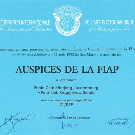 Exhibition is held under FIAP Auspice number: 21/059