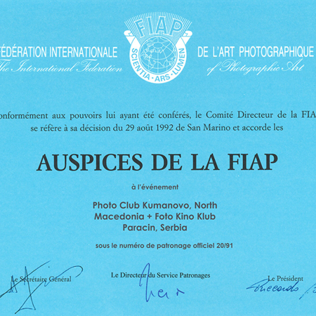 Exhibition is held under FIAP Auspice number: 20/91