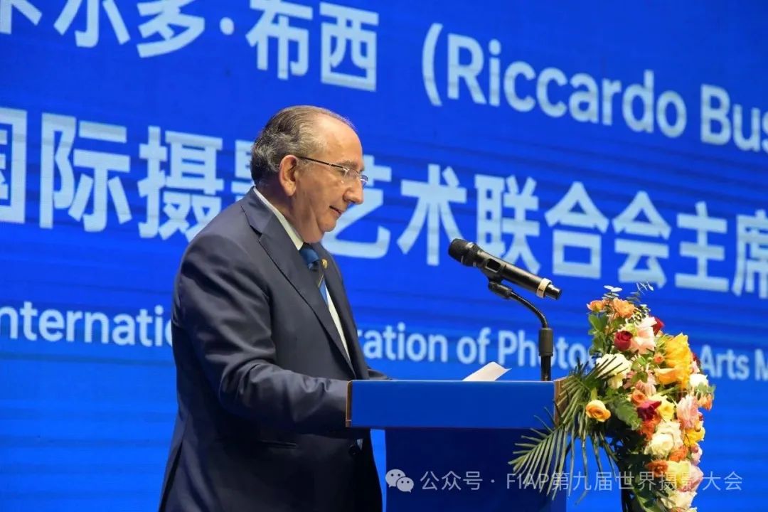 国际摄影艺术联合会主席里卡尔多·布西在第九届世界摄影大会开幕式上致辞